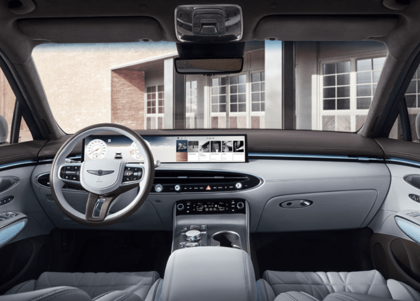 외관에서는 두 줄 헤드램프, 파라볼릭 라인, 제네시스의 크레스트 그릴 등이 역동성과 럭셔리를 함께 담고 있습니다. 실내는 슬림형 에어벤트, 크리스탈 디자인의 전자식 변속 다이얼, 고급 가죽/나파 시트 등으로 구성되어 있으며 편의성과 질감을 동시에 갖추고 있습니다.